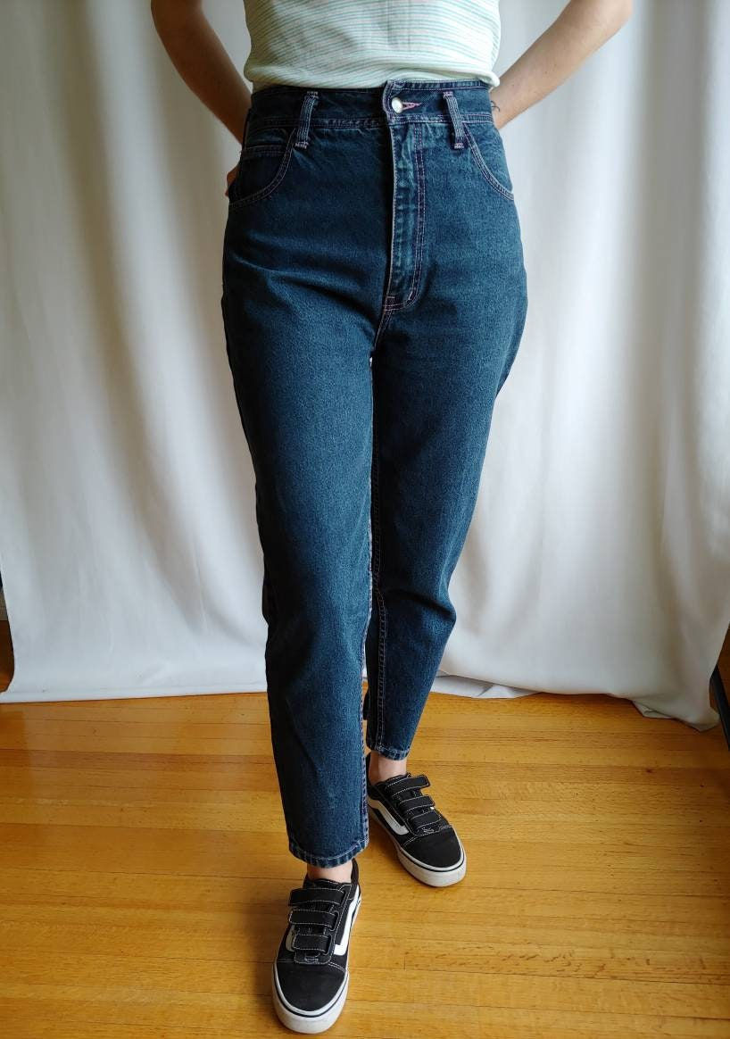 70s vintage Lee jeans 30 31 waist light wash extra high waisted tapered leg mom