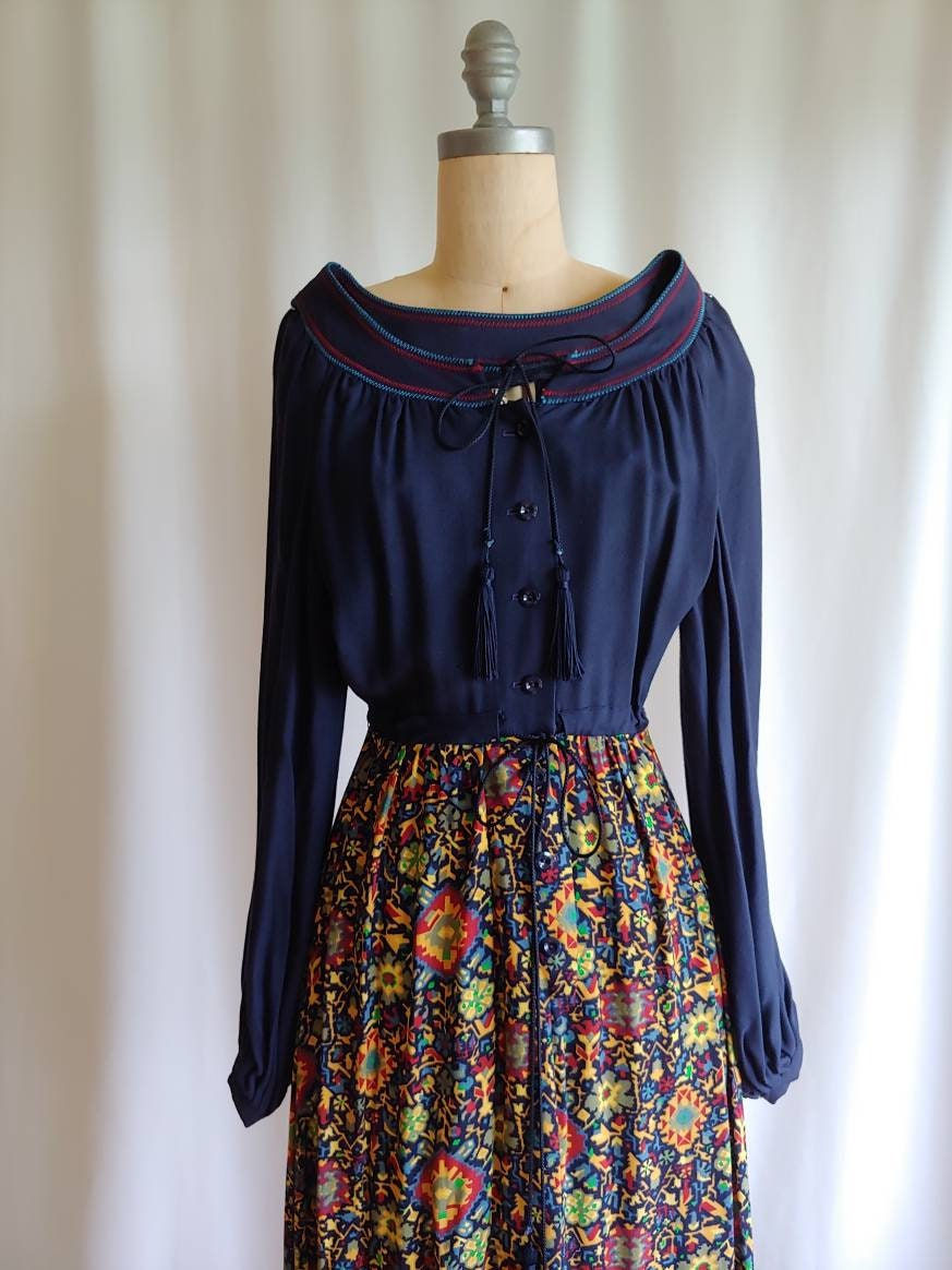 70s vintage Wallis Gunne Sax style bohemian Young Edwardian viscose hippie maxi